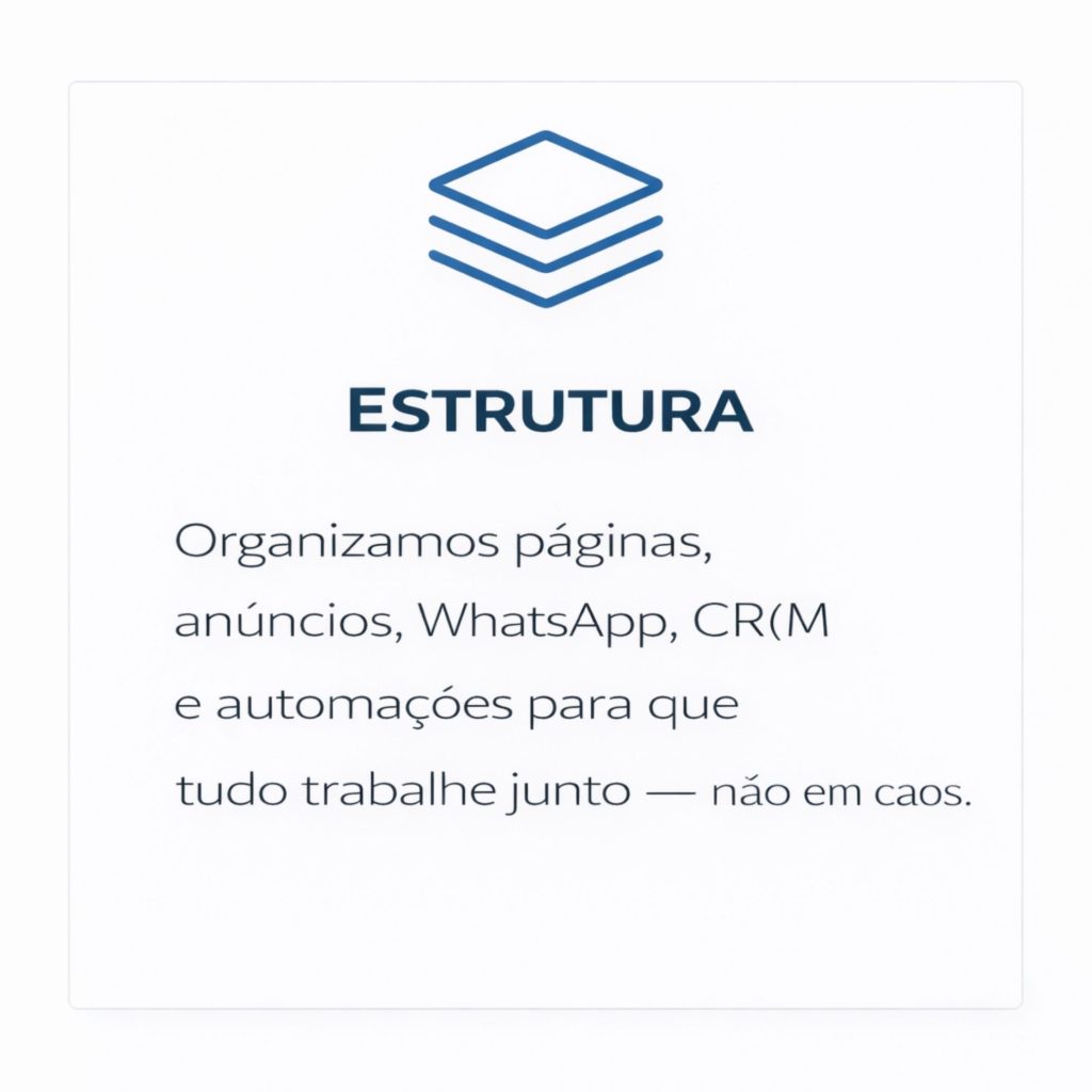É um método que une três pilares: Estrutura, Atração e Conversão. Diferente de quem só sobe anúncios, nós começamos validando a sua estrutura atual (site, perfil e oferta) para garantir que seu negócio está pronto para receber os leads. Só então ativamos o tráfego (Google, Redes Sociais e Linkedln) e orientamos seu time no atendimento. O Sistema serve para garantir que o dinheiro investido volte como lucro, e não seja desperdiçado em uma estrutura ruim.